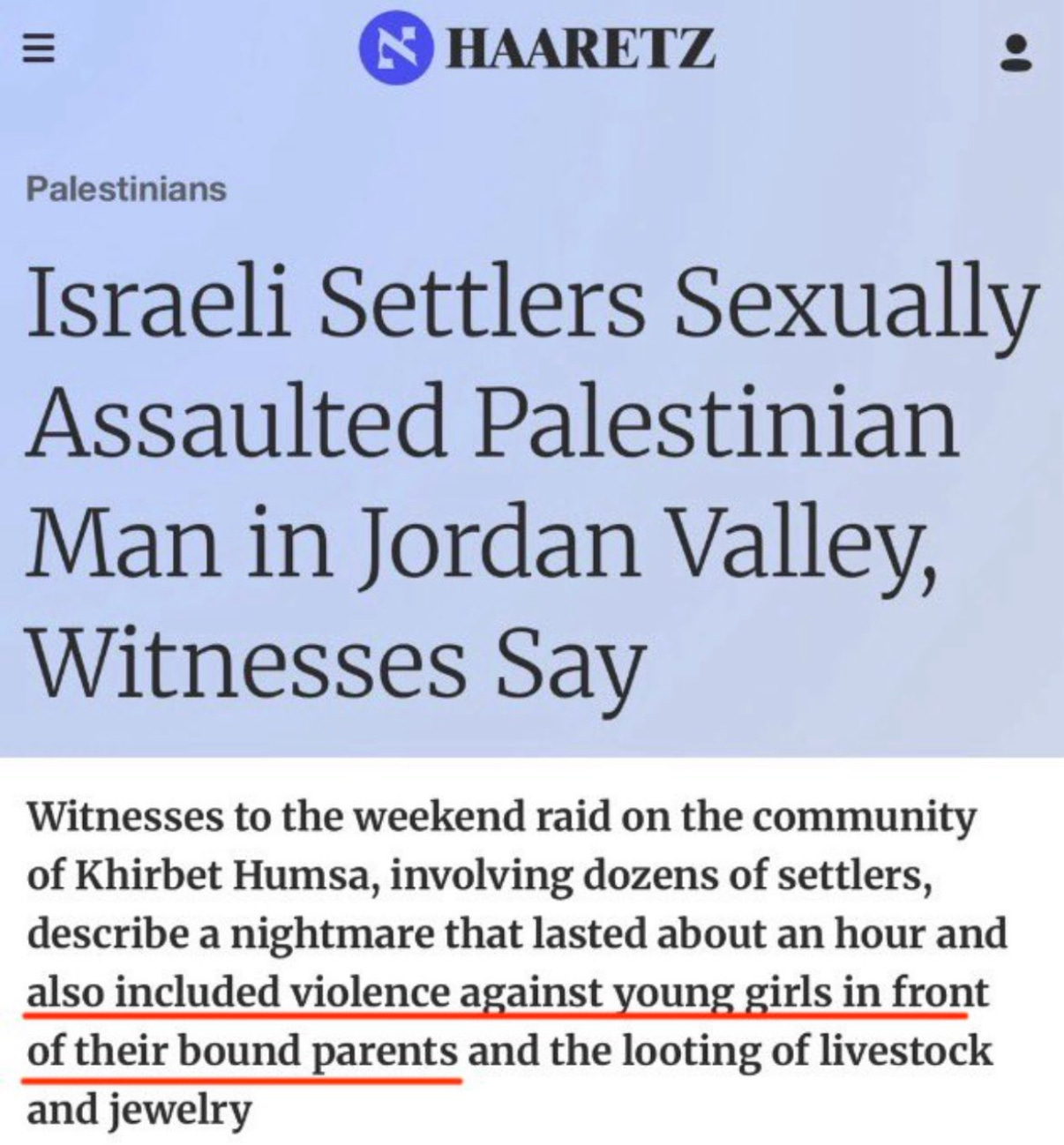 The report stated that over a 12-month period, there was 1,732 incidents of settler violence resulting in casualties or property damage, compared to 1,400 in the previous reporting period. This includes relentless harassment, intimidation, and destruction of homes and farmland.
