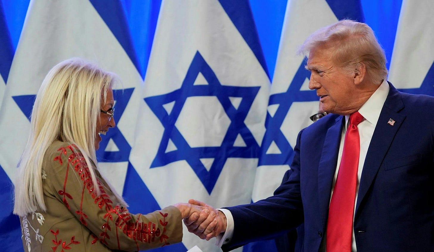 Miriam Adelson has openly said that she believes under Donald Trump, Israel will be able to annex the West Bank. Which brings me to the part I haven’t heard anybody talk about: her financial connections to settler violence in the West Bank.