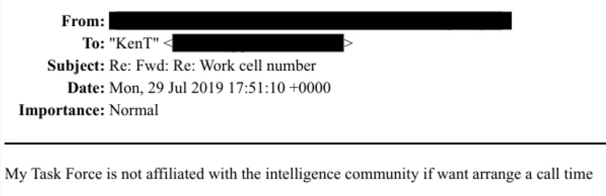 The unknown redacted U.S. contact responds cautiously, stating: