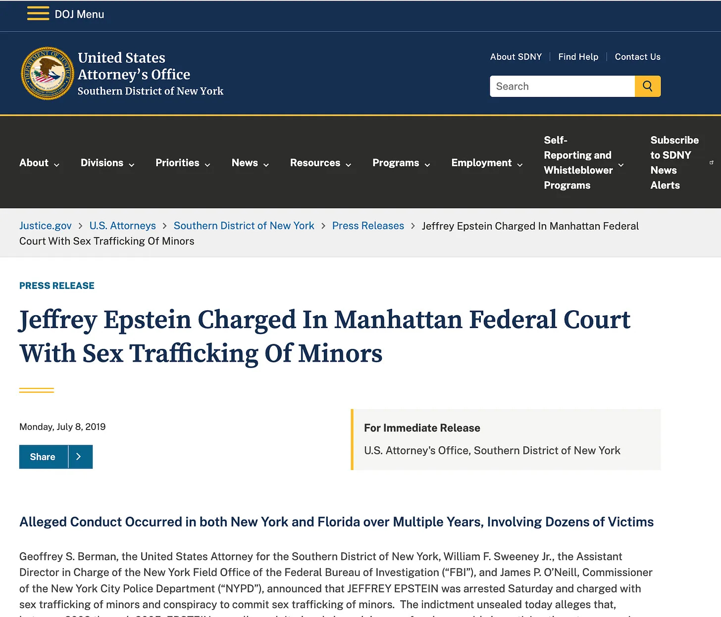 See the article about Epstein here: https://www.justice.gov/usao-sdny/pr/jeffrey-epstein-charged-manhattan-federal-court-sex-trafficking-minors
